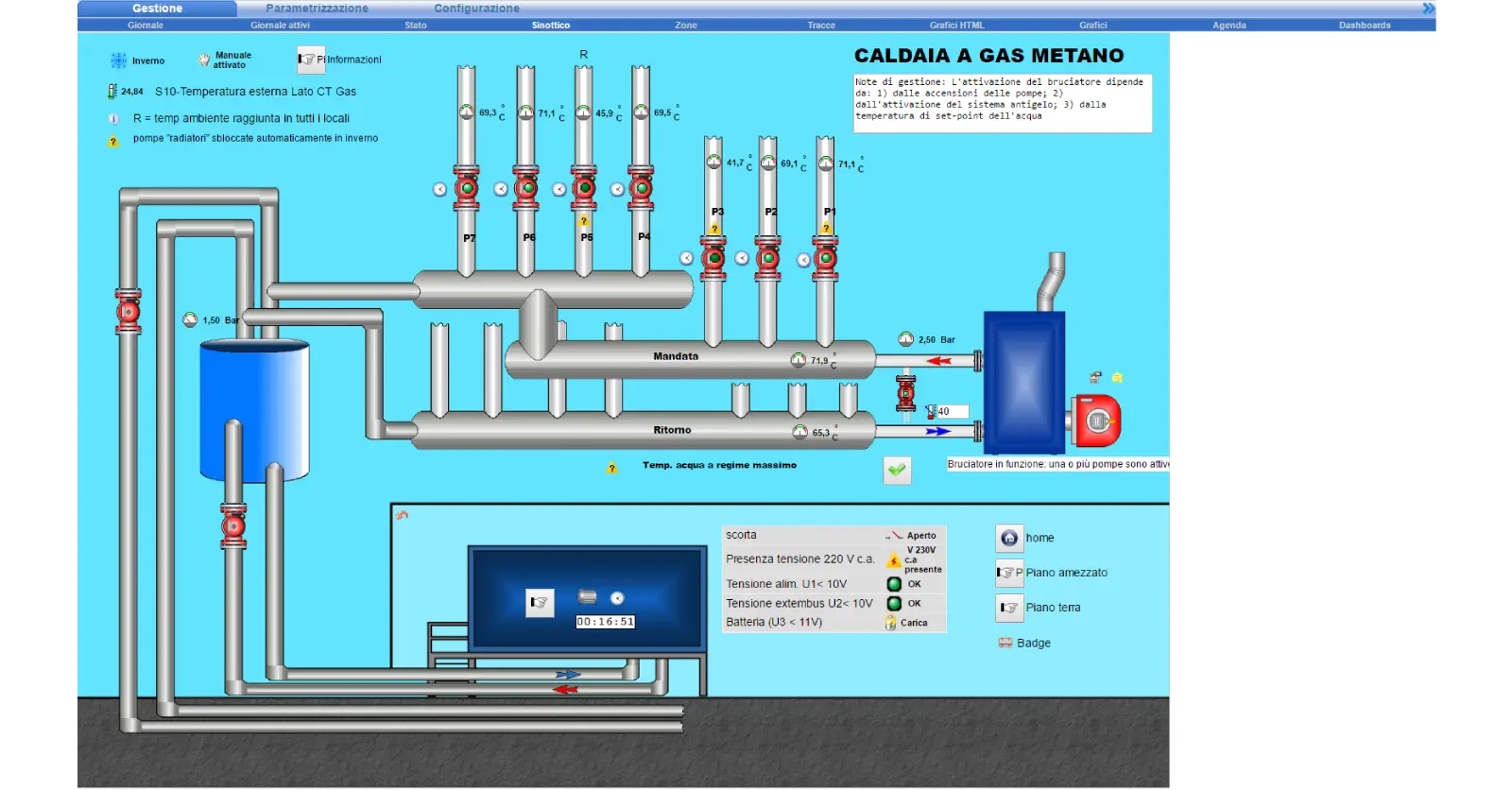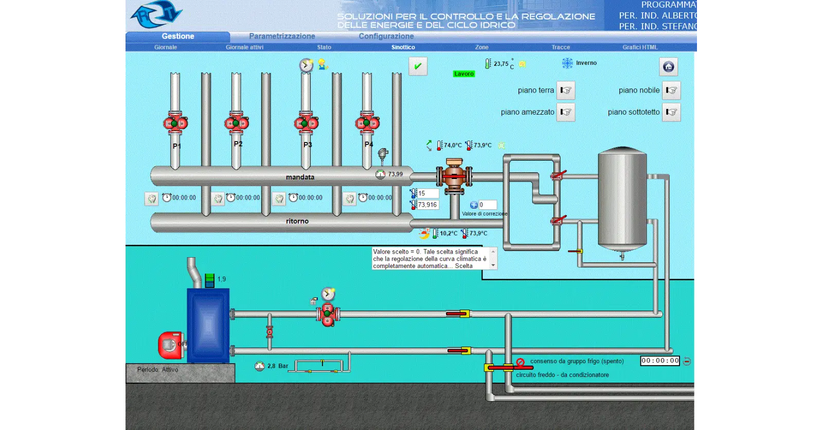 Gestione e telecontrollo (mediante rete informatica) impianto di riscaldamento del Palazzo comunale attraverso l'automazione dell'impianto elettrico e di termoregolazione delle caldaie presenti nell'edificio stesso senza modificare l'impianto termoidraulico esistente.