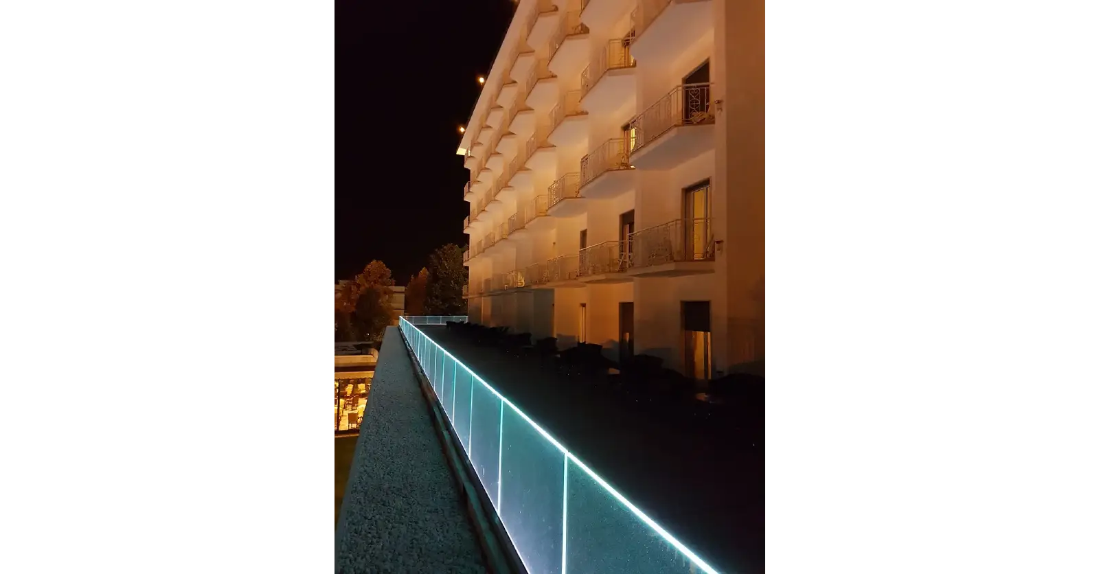 Il progetto riguarda il rifacimento dell’illuminazione interna ed esterna dell’Hotel con corpi illuminanti a led.